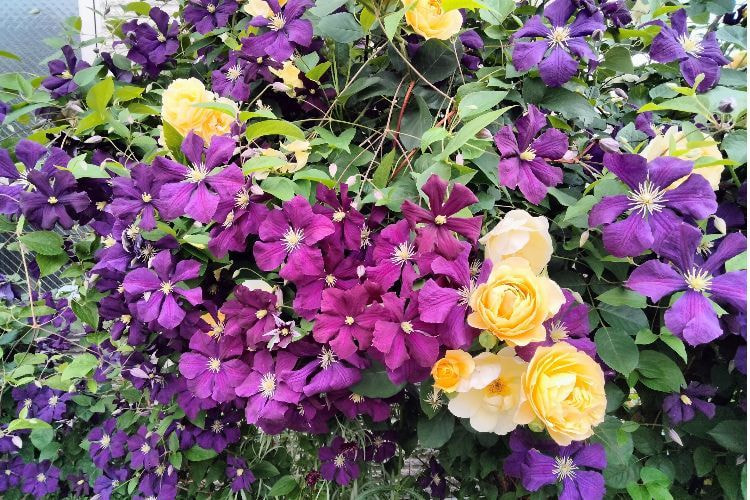 今では我が家のシンボルローズになりました。近年はクレマチスにも目覚めバラとの調和を考えて配置しています。